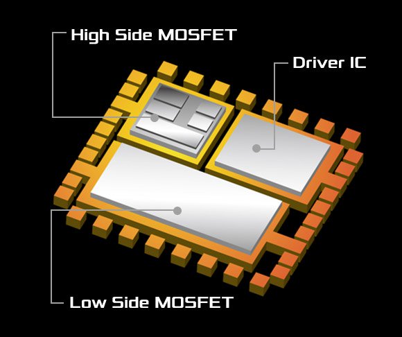Dr.MOS is the integrated power stage solution which is optimized for synchronous buck-set down voltage applications! Intelligently delivering higher current and driving continuous current for each phase, thus providing improved thermal result and superior performance.
