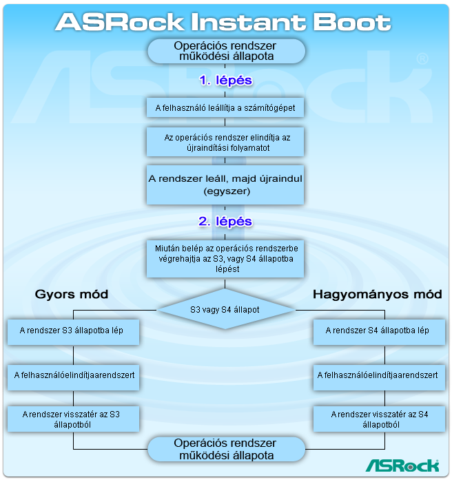 Jó hírekkel szolgálhatunk, az ASRock leküzdötte a technikai akadályokat és egy olyan egyedülálló technológiát fejlesztett ki, melynek segítéségével egy pillanat alatt elindíthatja számítógépét! Nemcsak pénzt és energiát takaríthat meg vele, de javítja a rendszer sebességét is.