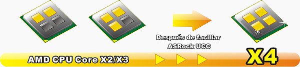 ¿Desea una actualización gratuita? ¡Por supuesto, puede tenerla! ¡A diferencia de una placa base tradicional, la serie de placas base ASRock UCC crea una nueva definición de cómo usar una placa base! Es una nueva placa base actualizable que permite a los usuarios utilizar la característica de ASRock UCC (Desbloqueo de Núcleos de la CPU) en BIOS, y los núcleos del Procesador pueden actualizarse desde X2/X3 a X4. Con ASRock UCC se simplifica la activación de núcleo desactivados en las CPU AMD. Con solo una simple selección de opción de BIOS UCC puede desbloquear los núcleos extra y disfrutar de un aumento de rendimiento de manera instantánea. Además, algunas CPU puede aumentar el tamaño de caché L3 hasta 6 MB. No solo en las placas base de la serie AMD 8xx, también hemos implementado la característica de UCC en las placas base de las serie Nvidia N68.