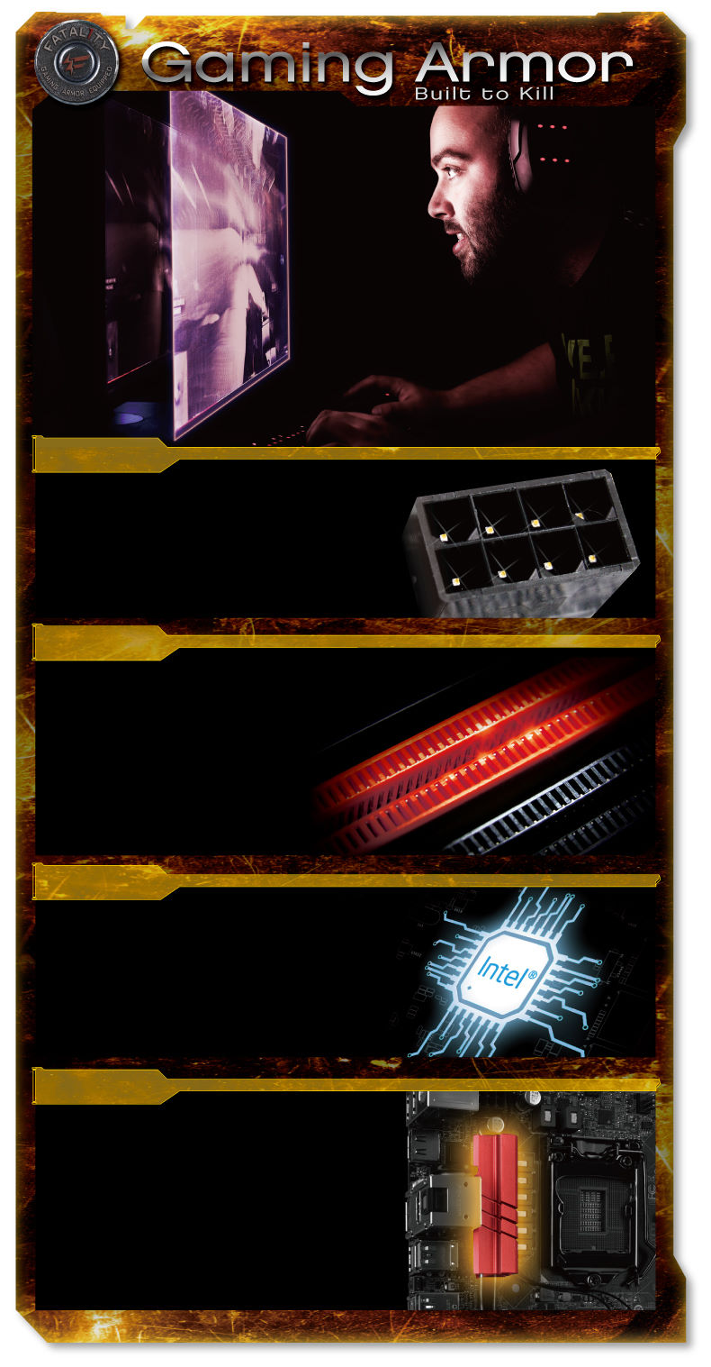 A new mysterious matte black and copper color scheme to match the prestigious components on ASRock's high-end 100 Series motherboards.