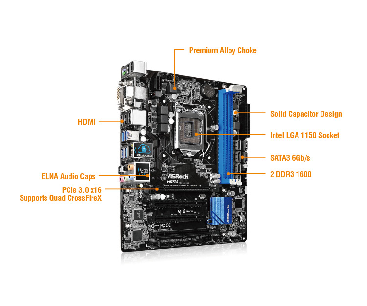 ASRock applied solid capacitors on this motherboard. With these solid caps, this motherboard is allowed to perform more stably and ensure longer lifetime.