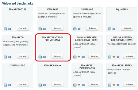 13. Please go back to HWBOT web page and click "Submit" in the "3D MARK VANTAGE-PERFORMANCE" to upload your score. |