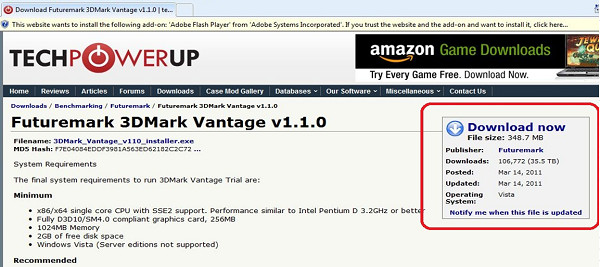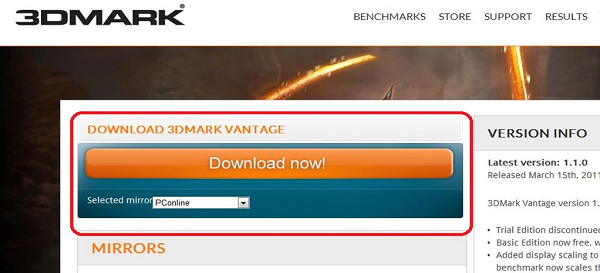 6. Please click "Download now" to download "3DMARK VANTAGE" software. |