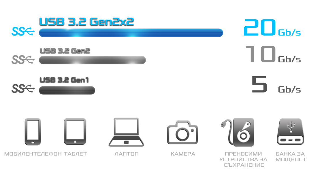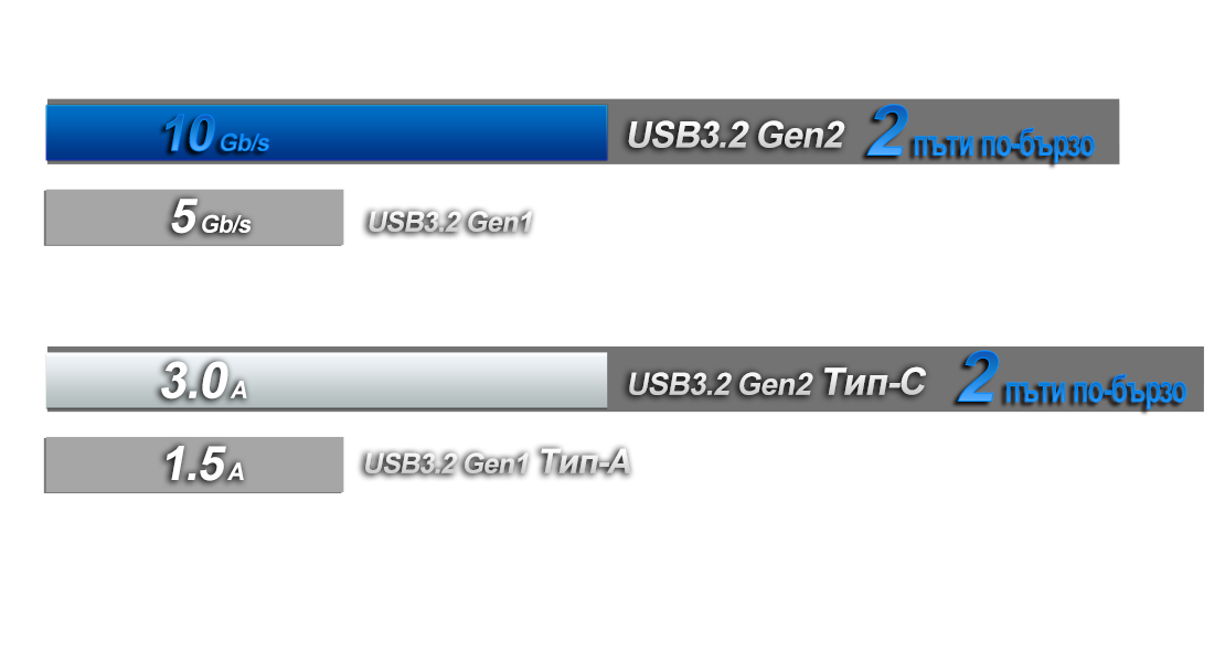 ДВОЕН USB 3.2 Gen2 (Тип-A + Tип-C)