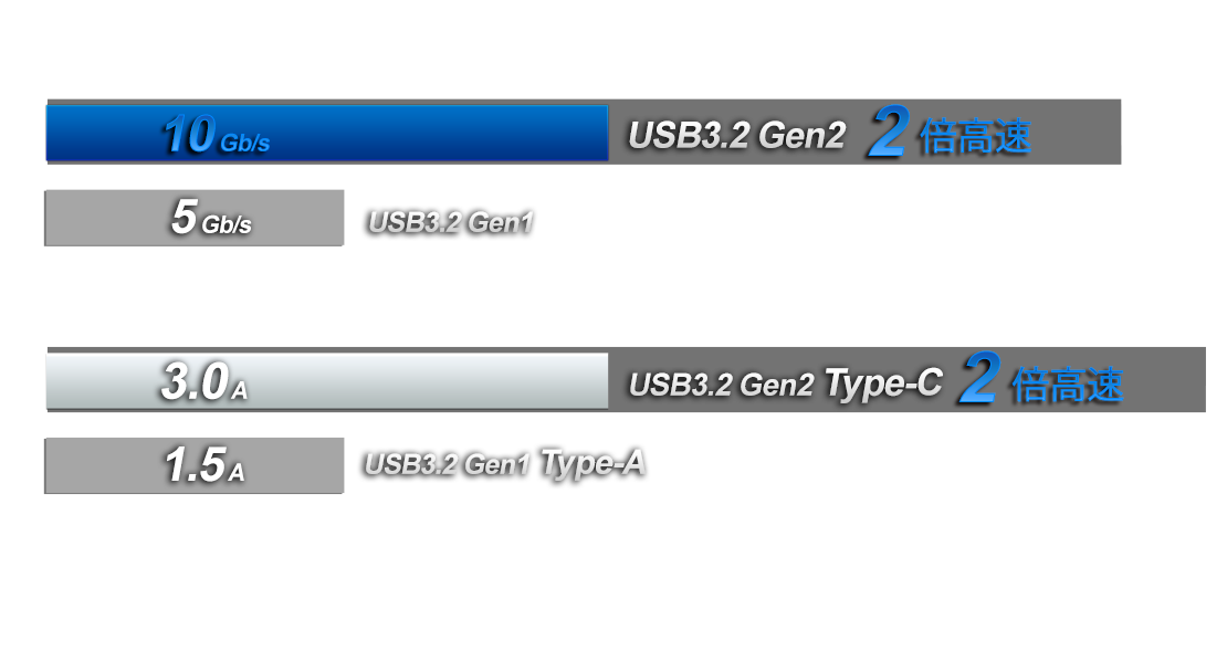 2 つの USB 3.2 Gen2(Type-A + Type-C)