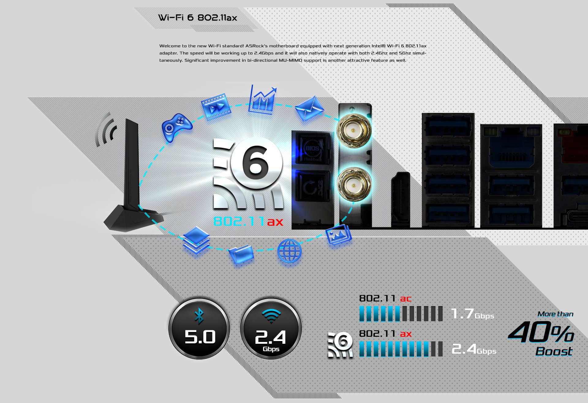 - 2 x cabezales USB 3.2 Gen1 (soporta 4 puertos USB 3.2 Gen1) (ASMedia ASM1074 cubo) (Soporta Protección ESD)