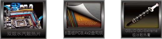 优秀的冷却系统能释放更多超频潜力。华擎Formula 散热模块 能让主板在进行极限超频时, 依然保持良好的散热效果!双效水汽散热片 (Twin-Power Cooling) 结合主动式风冷和水冷技术, 双效合一散热方案可强化系统的对流效果;该板采用 8 层板 PCB 设计, 4 x 2OZ 铜电路板, 相较于市面上6层板 PCB, 2 x 2OZ的Z77主板产品, 华擎Z77 OC Formula在极限超频的状况下, 更能有效抑制 PCB 温度;吸睛破表的规格包括独家赠送的GELID GC-Extreme极冰散热膏 (GELID GC-Extreme Thermal Compound), ASRock/GELID 携手合作, 附赠的此款散热膏, 拥有极佳的热传导性, 即使主板在低温环境中进行 LN2 极限超频, 该散热膏也不会发生结冻情形。