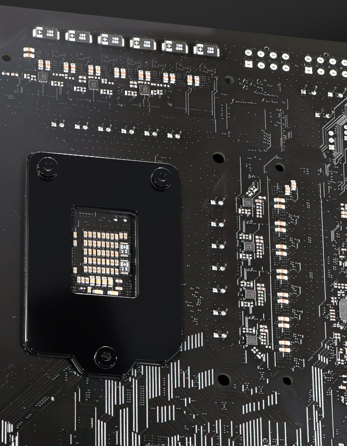 Z590 OC Formula features a unique “PCB Backdrill” craftsmanship by removing the excess stub in multilayered printed wiring boards, this benefits in extreme memory overclocking by allowing signal ......