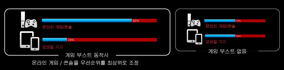 사용자의 온라인 게임 및 콘솔에 최고의 게임 환경에 필요한 대역폭을 자동으로 제공