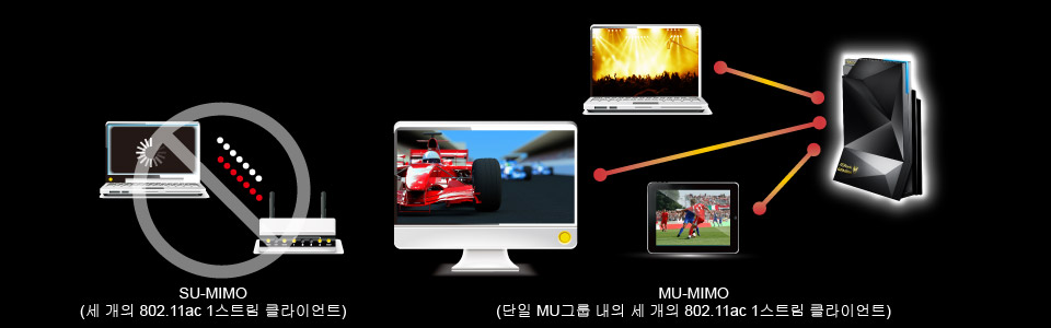 동시에 여러 기기에 스트리밍 및 게임이 가능한 최신 무선 802.11ac 기술