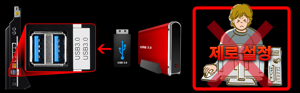 | 포트 | 1 x RJ45 10/100/1000 WAN Port 1 x RJ45 10/100/1000 LAN Ports 2 x USB 3.0 Ports for USB Storage / Printer Server |