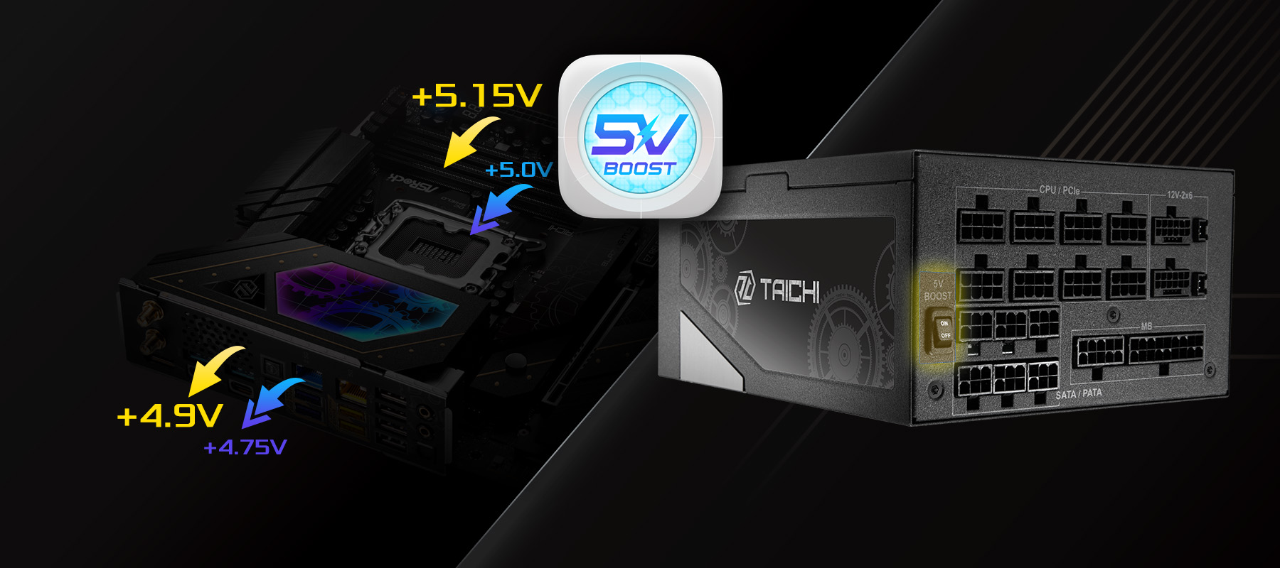 The ASRock TAICHI series power supply supports both current and future standards, fully compliant with ATX12V V3.1 and PCIe Gen 5.1. Ideal for both current systems and future builds, this power supplies can handle up to 235% power excursion and respond swiftly to power spikes, ensuring reliable, safe power for your components.
