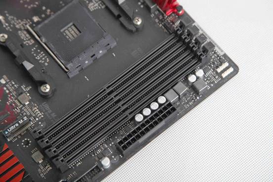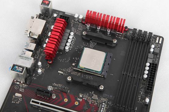 主板采用AM4 插槽, 支持A 系列 APU (Bristol Ridge) 与 Ryzen 处理器 (Summit Ridge)。CPU供电单元采用9相数字供电设计,支持 95W 空冷。这次A 系列 APU 上集成 AMD Vega系列显示核心,最大共享显存 2GB,可以通过BIOS里设置,分享2GB内存空间给GPU做显存。