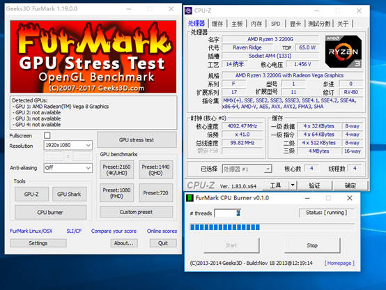 FurMark压力测试,CPU可以稳定在4.1GHz运行。