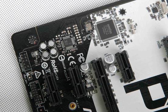 CPU超频能力如何,除了要看本身的体质,主板CPU供电组同样也很重要。这块主板采用了9相CPU供电配置,使用数字脉冲宽度调制(PWM)设计,可以更有效更流畅地提供CPU Vcore 电压,同时搭配华擎的新一代高效电感,提高并改善主板的 Vcore 电压供应,从而大大提高主板的稳定性和使用寿命。