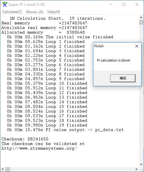 Super π 1M用时:10.476s。