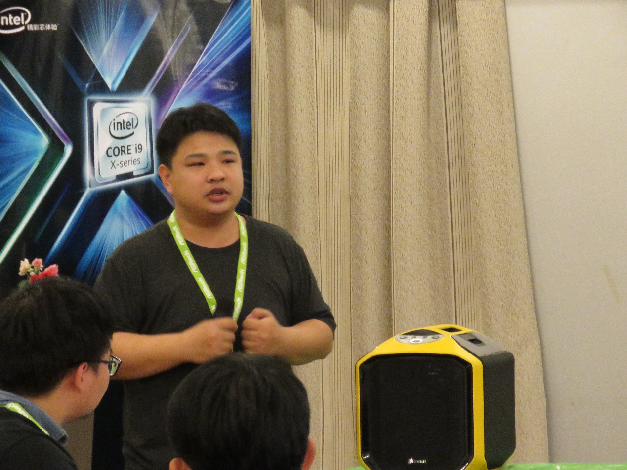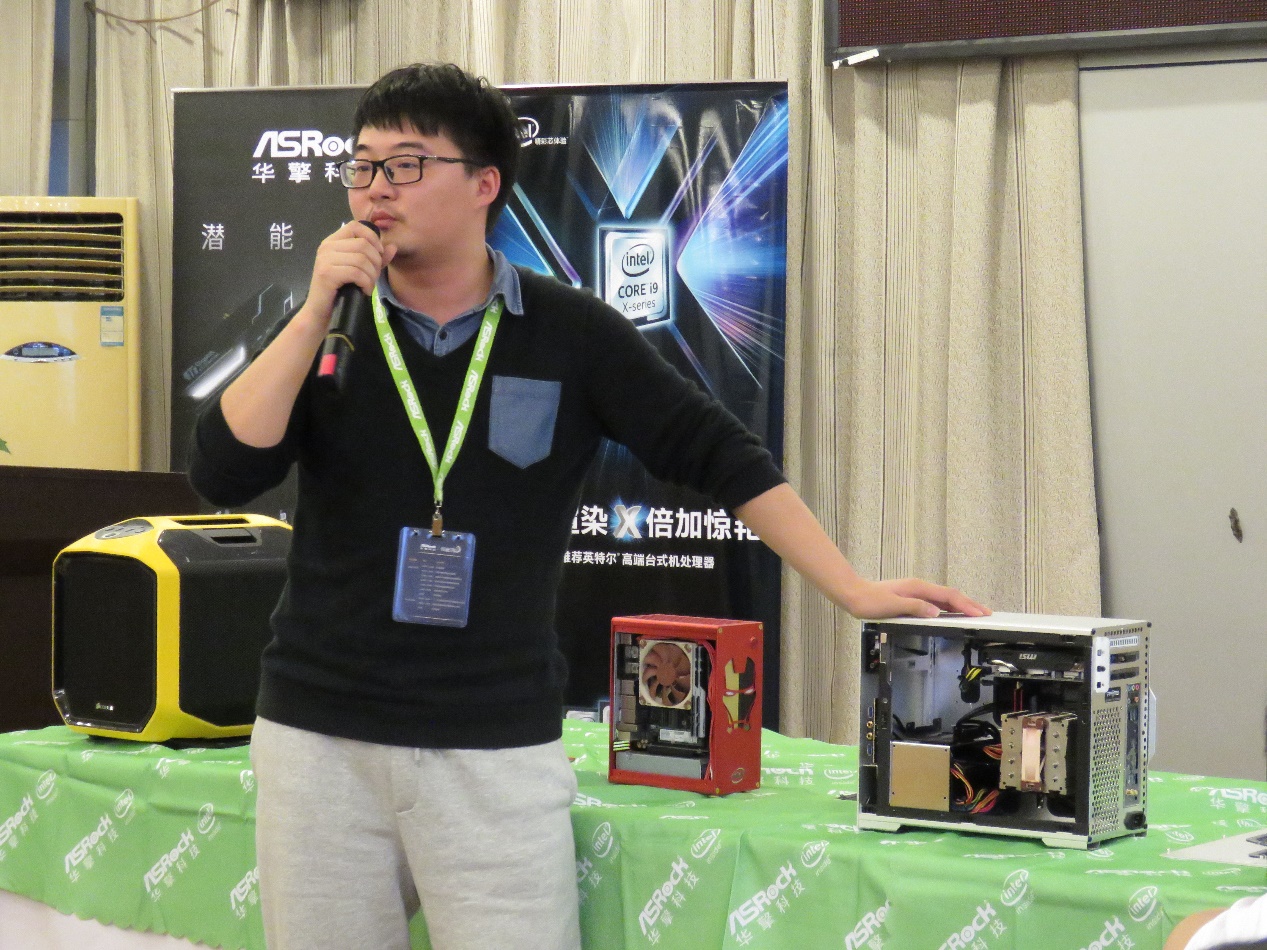 玩家代表李鸿程带来的是一台亮眼的银色小机箱,并重点介绍了所带来机器的装机思路和内部零件的配置。在讲述过程中设身处地的为终端消费者考虑实际问题,从配色到安装再到布线,丝丝入扣,层层递进,所言精彩之处掌声频频。