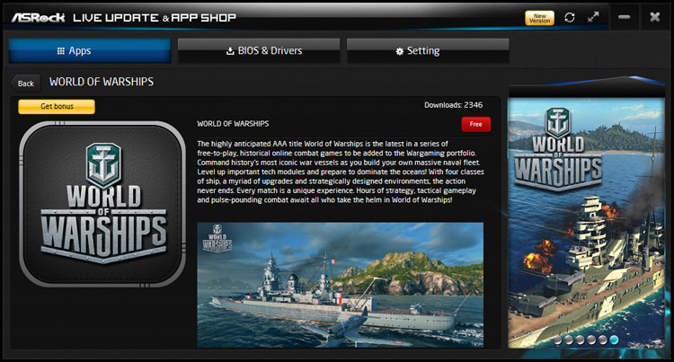 1. Jan. 05, 2017 ~ July. 05, 2017 PM11:59 (GMT+8) 2. Promotion is only available in selected regions of Asia Pacific. 3. To participate this program, please make sure the World of Warships program is installed https://worldofwarships.asia/en/content/game/ 4. Product cannot be refunded once the code is redeemed. 5. This program is available only on ASRock APP Shop. 6. The claim deadline for this promotion is July. 05, 2017 PM11:59 (GMT+8) 7. For any questions regarding this promotion, please contact: appshop@asrock.com.tw 8. About ASRock AppShop: http://www.asrock.com/feature/appshop/index.html |