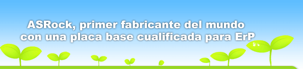 ¡ASRock, el primer fabricante de Placas Base Calificada para ErP/EuP del Mundo! ¡ASRock se enorgullece de anunciar que es el primer fabricante de placas base del mundo que presenta en el mercado una placa base “Cualificada para ErP/EuP”! Con la placa base “Cualificada para ErP/EuP” de ASRock, se puede crear un sistema para superar el estándar de ErP/EuP. |