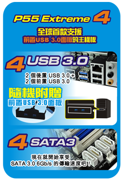 P55 Extreme4 - 世界首款支持前置USB 3.0面板的主機板