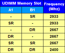 DDR4 UDIMM 最大周波数サポートについては下の表を参照してください.