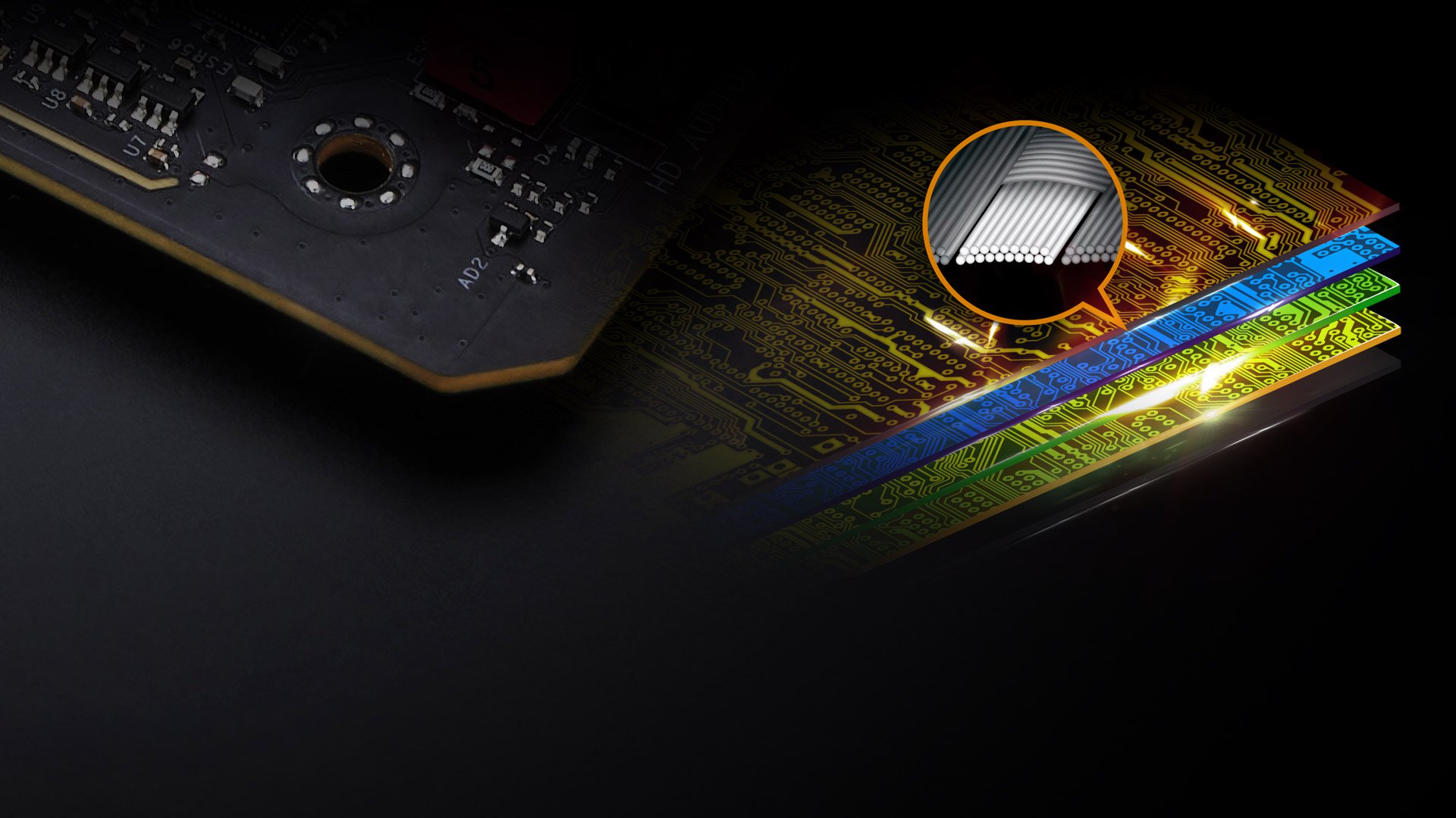 The 12 layers server grade PCB prevents PCB bending and improves signal integrity, giving higher performance as well as system stability, giving a reliable and long-lasting system without any compromise.