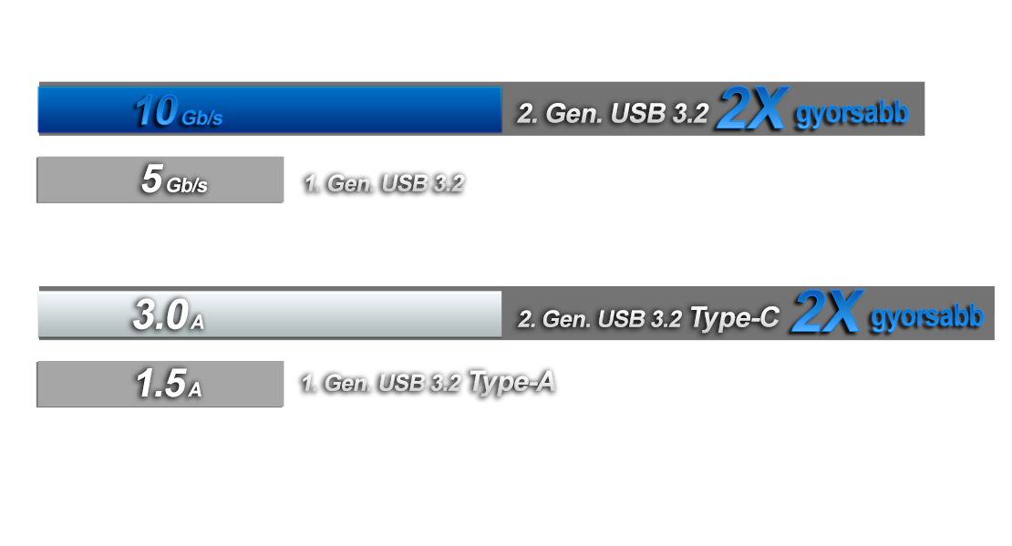 ELŐLAPI 2x2. gen USB 3.1 és dupla 2. gen. USB 3.2 (Type-A és Type-C)