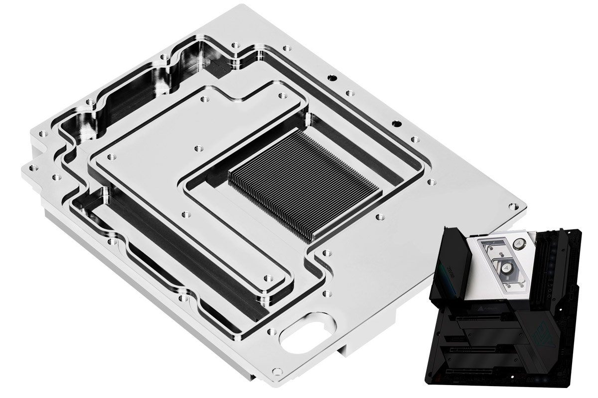Élégante mais fonctionnelle , cette carte mère unique bénéficie d’un bloc de refroidissement à eau AQUA personnalisé conçu pour dissiper la chaleur du CPU et du VRM aussi efficacement que possible. Elle profite également d’effets d'éclairage LED RGB sophistiqués et accrocheurs qui éclairent le passage de l'eau pour donner un look plus abouti à l’ensemble.