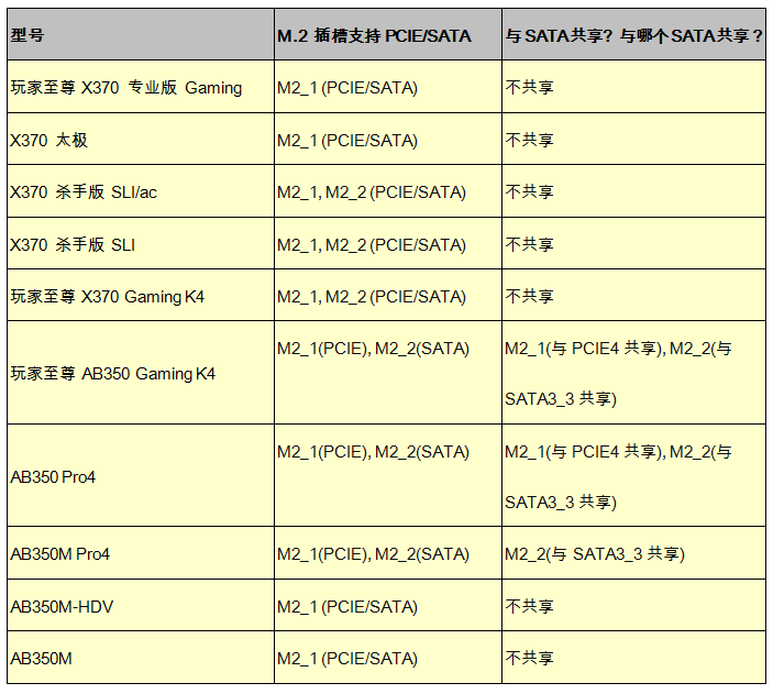 不同的AM4主板型号所支持的M.2规格也不同。请参考下面表格获取详细信息: