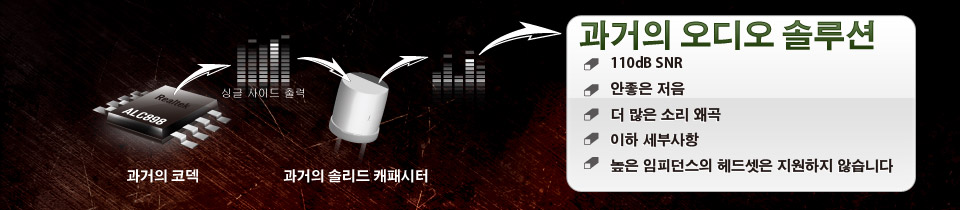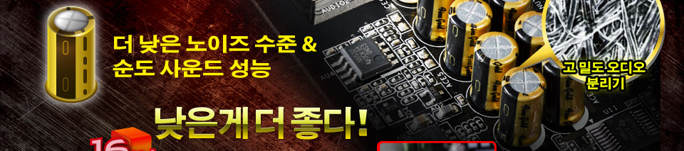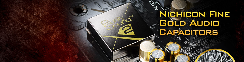 | 니치콘 파인 오디오 캐패시터는 PC 에서 모든 오디오 애호가들이 갈망해온것으로, ASRock 은 업그레이드된 Purity Sound™ 2 를 위해 이러한 고품질 캐패시터를 적용했습니다. 초 고 선명의 가장 정제된 오디오 성능을 즐길 시간입니다. |