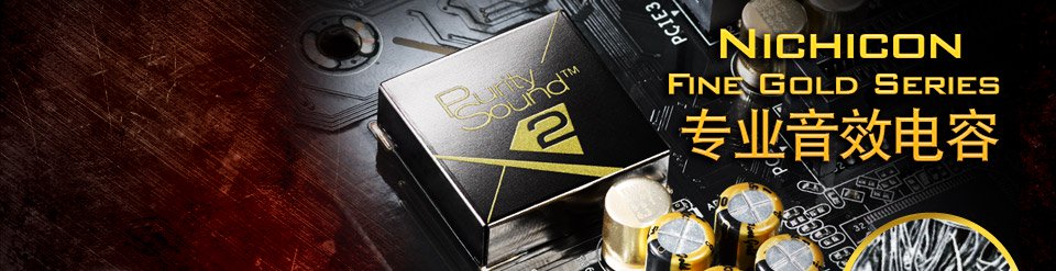 | 高保真音效技术再进化!华擎科技大手笔采用 Nichicon Fine Gold 系列专业音效电容,保证满足最挑剔的音响发烧友,提供您更纯净自然的超优质音效飨宴。 |