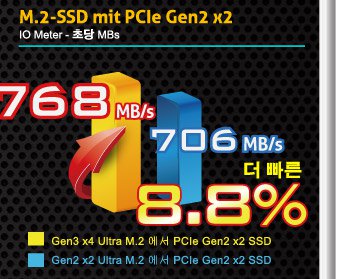 다른 M.2 설계와 비교해서, Ultra M.2 디자인은 더 낮은 지연과 높은 속도를 CPU 에 직접 전달하는 PCIe Gen3 x4 대역을 사용합니다.