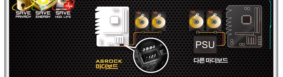 SATA 포트 근처에 배치된 전용 4-핀 HDD 보호 커넥터가 있습니다. 하드디스크에 연결하는것으로, 필요한경우 소프트웨어를 통해 하드디스크를 켜거나 끌 수 있습니다. HDD 보호 기술은 더 많은 개인정보를 보호하고, 더 많은 에너지를 절약하며, HDD 의 수명을 연장해줍니다.