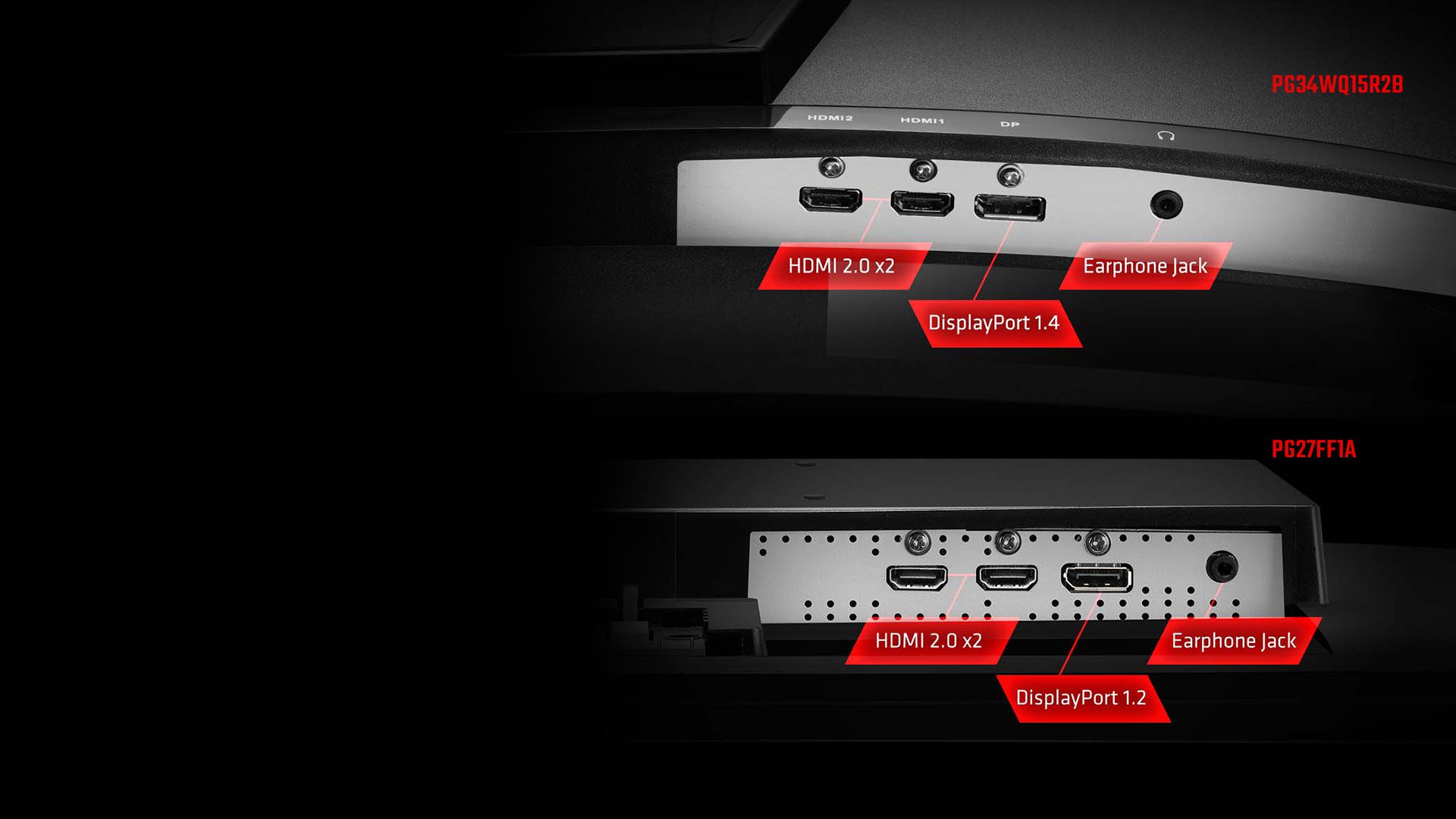 One Display port supports up to a 165Hz refresh rate. Two additional HDMI 2.0 ports are available for secondary displays and compatible consoles. Plus, the two built-in speakers and one 3.5mm earphone output offer gamers a better gaming experience.