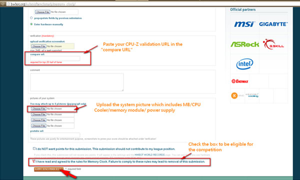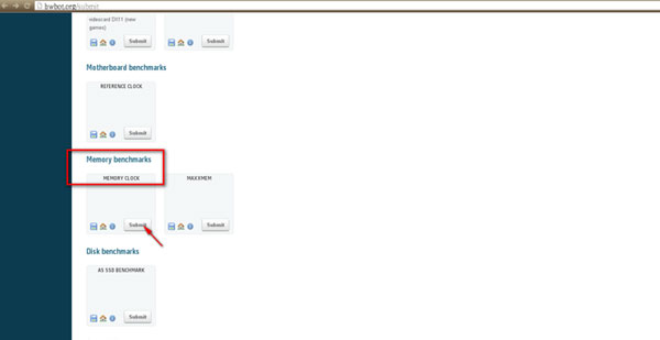 Click “submit” in the “Memory benchmarks→memory clock” (http://hwbot.org/submit) |