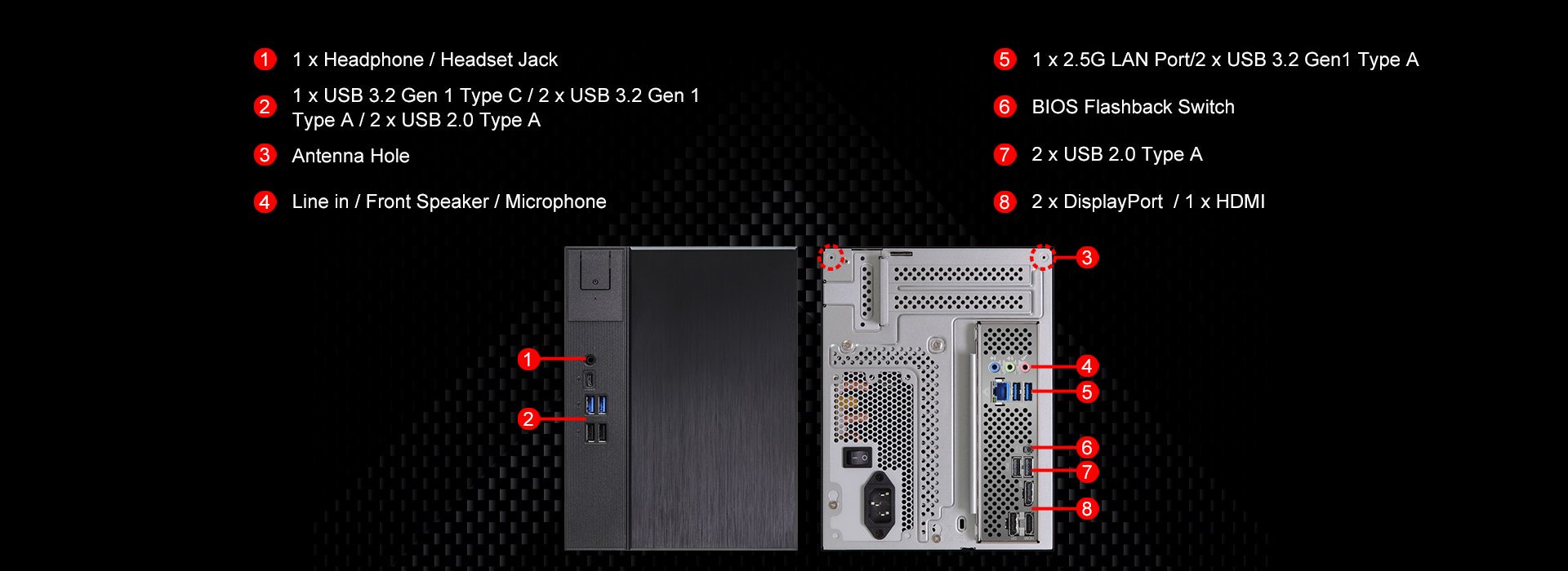 - 4 x DDR5 DIMM slots (Max. 256GB)