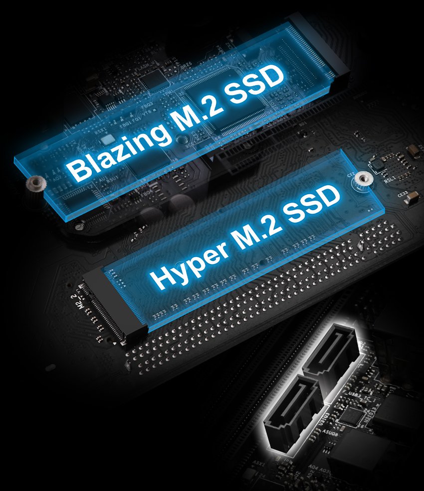 - 1 x Blazing M.2 Socket (M2_1), supports type 2280 PCIe Gen5x4 (128 Gb/s) modes