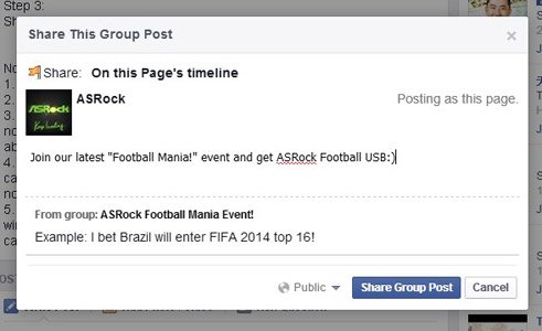 Share this ASRock “2014 Football Campaign" on your personal Facebook.