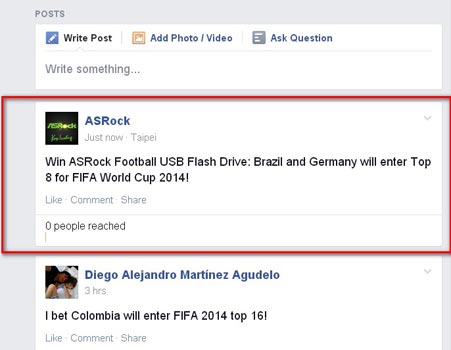 Win ASRock Football USB Flash Drive: ____________ (Country 1) and ____________ (Country 2) will enter Top 8 for FIFA World Cup 2014! |