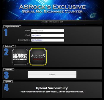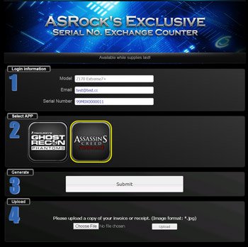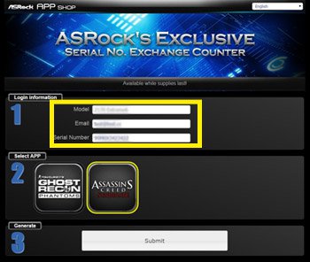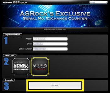1. Laden Sie den ASRock APP Shop herunter und installieren Sie diesen.![]() 2. Wählen Sie die Assassin's-Creed-Syndicate-APP durch einen Klick auf "FREE". ![]() 3. Klicken Sie auf "Get BONUS" um den "ASRock's Exclusive Serial NO. Exchange Counter" zu nutzen. ![]() 4. Geben Sie Ihre E-Mail-Adresse und die Seriennummer vom Mainboard ein. 5. Wählen Sie Assassin's Creed Syndicate und klicken Sie auf "SUBMIT" ![]() 6. Laden Sie einen gültigen Kaufbeleg hoch (Quittung, Rechnung, etc.). Klicken Sie hier für Beispiele. ![]() 7. Der Spieleschlüssel wird Ihnen innerhalb von 72 Stunden nach der Bewilligung zu Ihrer E-Mail-Adresse geschickt. ![]() |