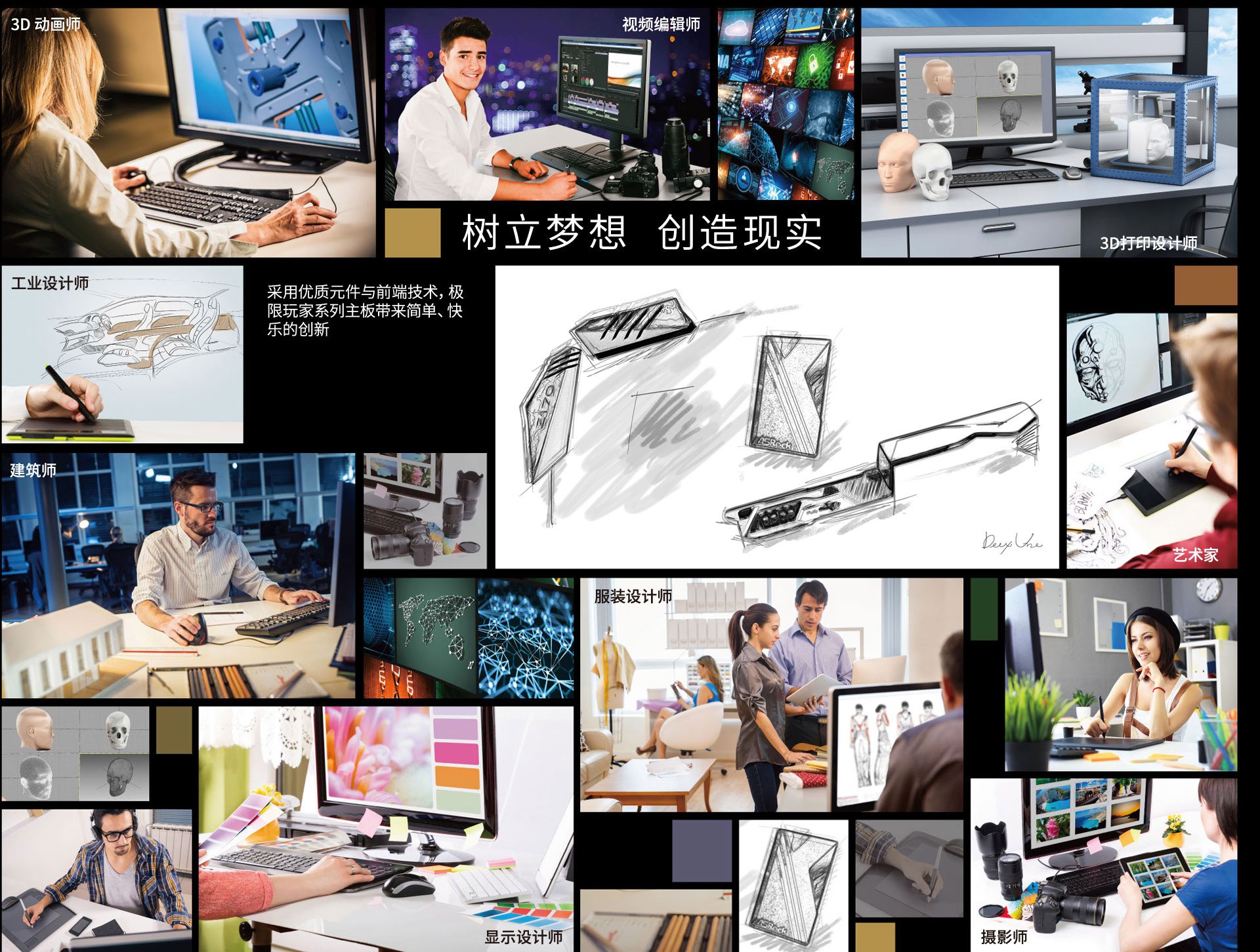 这些插槽不但完全兼容标准显示适配器,更兼容于NVIDIA® Quadro 与 AMD FirePro等服务器级的绘图、运算卡,确保所有2D、3D美术设计师、工程师的系统拥有最高兼容性与稳定性