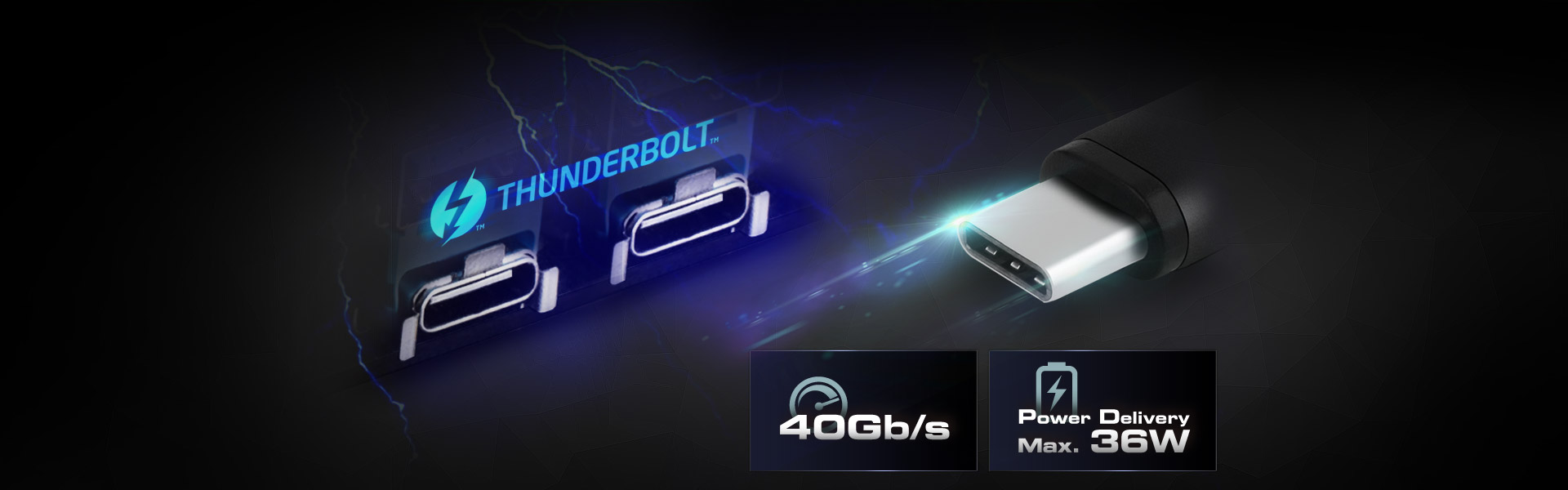 Experience the world's fastest connectivity with ASRock's Intel® Thunderbolt™ready motherboards. The Daisy-chain feature allows users to connect up to 6 Thunderbolt™ devices with a single wire. The highly desirable reversible USB 3.1 Type-C interface delivers breathtaking 40 Gb/s data transfer speeds and also supports USB PD 2.0 charging up to 12V@3A (36W).
