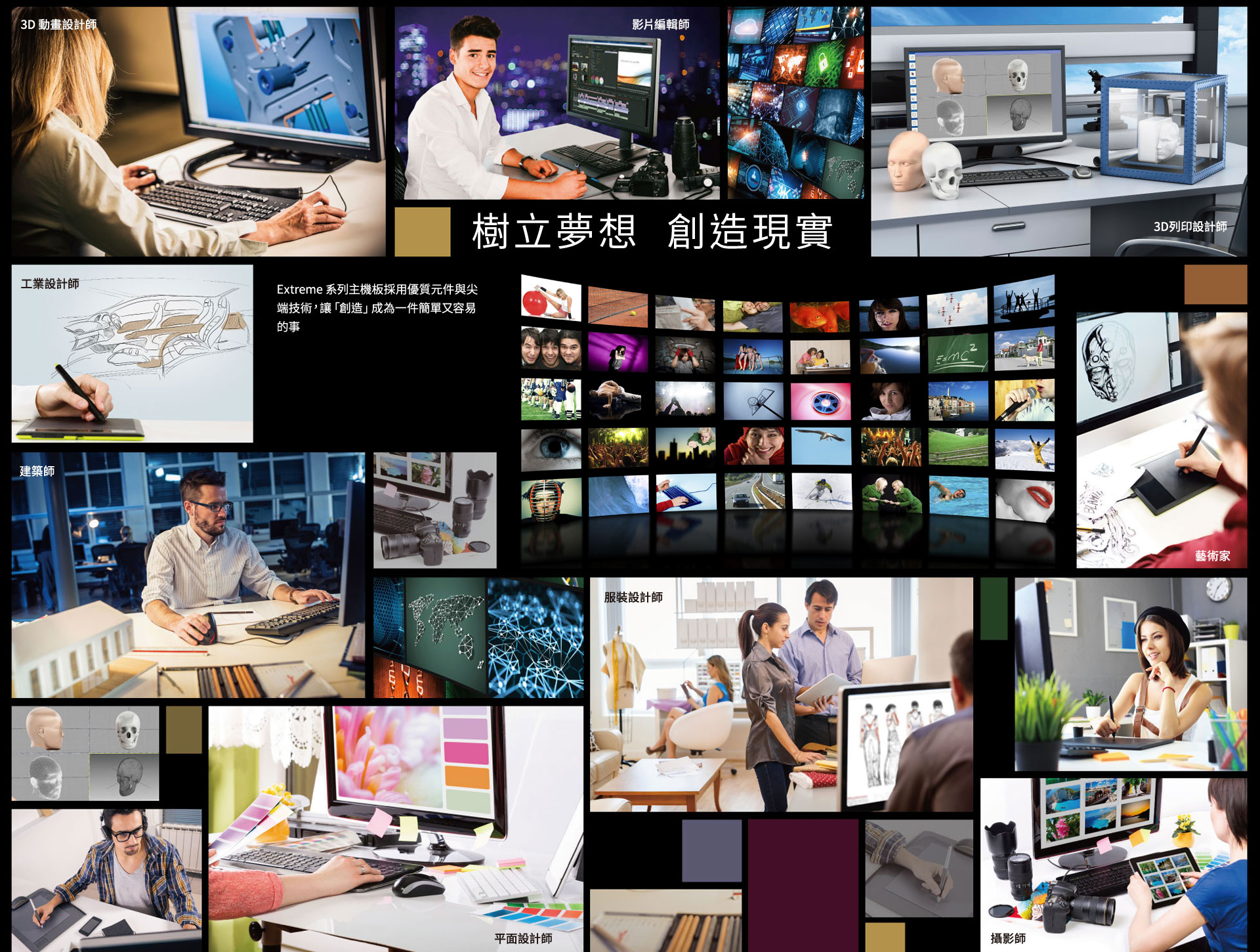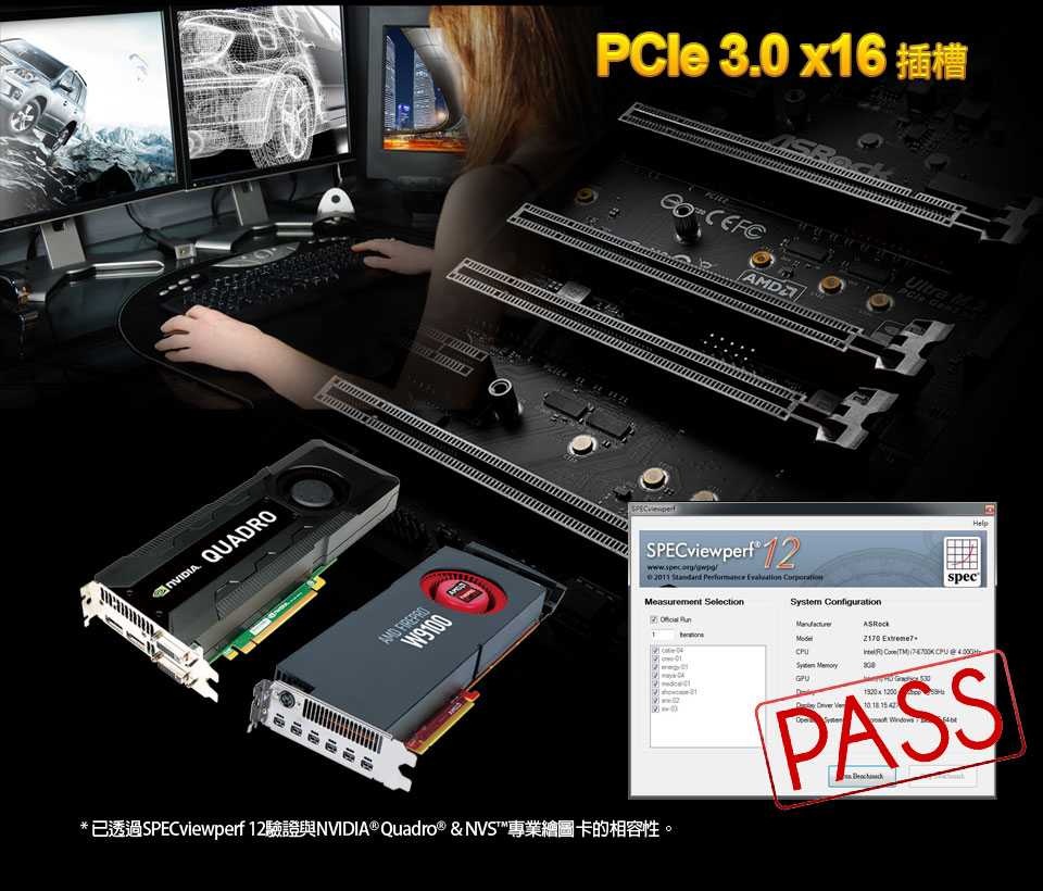 華擎 Extreme 系列主機板支援 Nvidia Quadro 與 AMD FirePro 工作站繪圖卡,是創作虛擬實境(VR)內容的頂級配備。