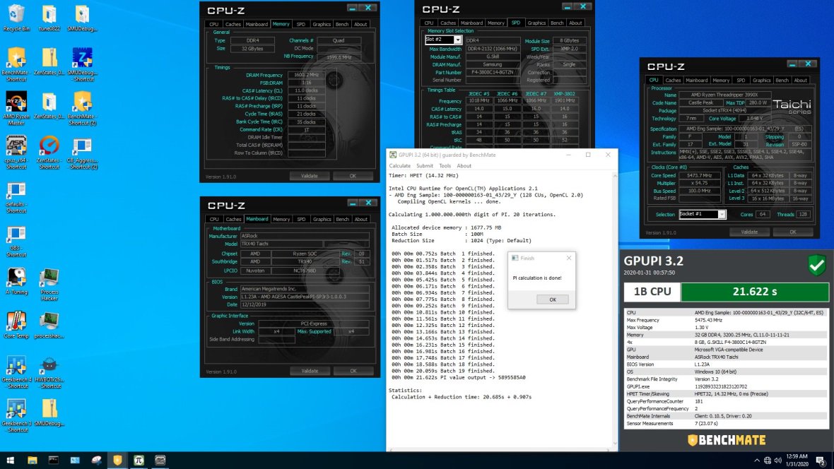↑The best record, 21sec 622ms, is made by using TRX40 Taichi with Ryzen Threadripper 3990X. (Check new record here on HWBOT)