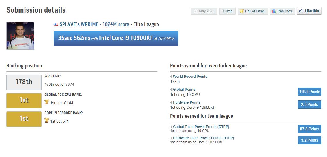 Winning a total of 4 Global First Place is not an easy task. Thanks and congratulations to Splave, he has managed extremely well to overclock i9-10900KF on Z490 AQUA (special version). These achievements are attributed by the hard work and ASRock's key esprit - pursuing innovation. The Z490 AQUA (special version) is no doubt the right choice for PC enthusiasts.
