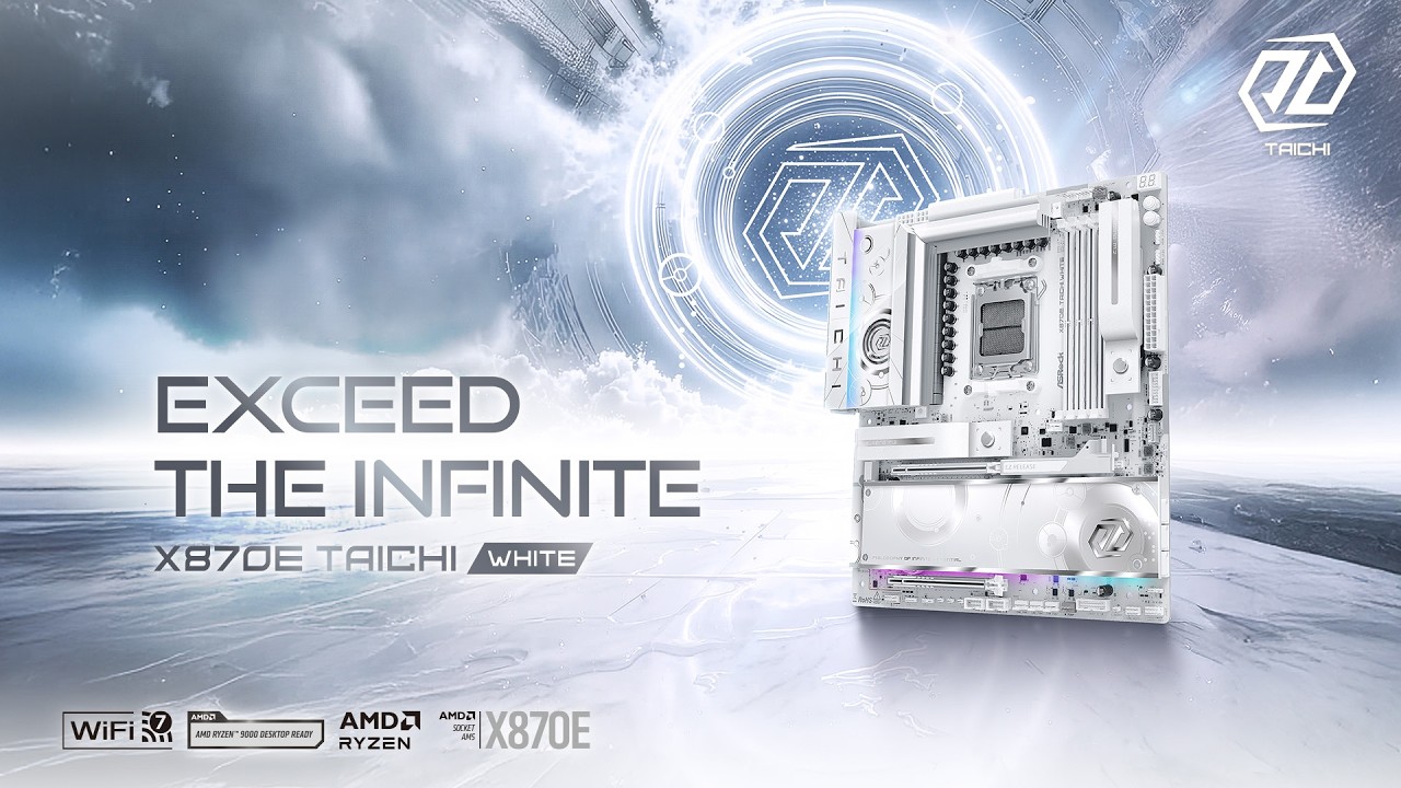 The X870E Taichi White introduces a futuristic, all-white design inspired by a digital sci-fi aesthetic. While staying true to the Taichi series' philosophy of balance, it reinterprets that identity through a more modern and refined visual language. Blending premium craftsmanship with an elegant new look, it brings a fresh dimension to the Taichi flagship.