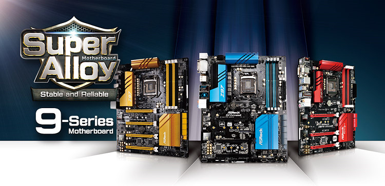 ASRocks Mainboards aus der 9er-Serie mit Superlegierung (Super Alloy) bieten eine umfangreiche Kompatibilität und unterstützen Intels Core-Prozessoren der vierten, der neuen vierten und der fünften Generation für Sockel 1150. Das Produktportfolio umfasst die Serie 'Extreme' für High-End-PCs, die Serie 'Fatal1ty Killer Gaming' für Elite-Gamer und die Serie 'OC Formula' für OC-Enthusiasten. Die Mainboards der 9er-Serie weisen ein spezielles Superlegierungsdesign auf, das für eine höhere Stabilität und eine bessere Zuverlässigkeit sorgt. Zu dem Design gehören unter anderem 12K-Platinum-Kondensatoren mit der längsten Lebenserwartung in der Branche, das neue NexFET-MOSFET, Dual-Stack-MOSFETs (DSM), hochwertige legierte Spulen und ein XXL-Kühlkörper, bestehend aus einer Aluminiumlegierung. Hier wird deutlich, dass ASRock die Ambition hat, die Handwerkskunst im Mainboardbau neu zu definieren.