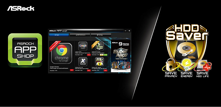 Ebenfalls im Rahmen der Live-Show zu sehen sein wird der faszinierende Auftritt des Fatal1ty Z97X Killer sein, das mit seinem massiven, roten Kühlkörper aus Aluminiumlegierung gerade erst mit der Computex-Auszeichnung Best Choice 2014 geehrt wurde! Das Fatal1ty Z97X Killer demonstriert dabei zwei von ASRocks neuesten exklusiven Technologien, den HDD Saver und den APP Shop. Durch einen zusätzlichen HDD-Saver-Anschluss mit vier Pins nahe den SATA-Ports können Sie Ihre HDDs oder ODDs mittels Software an- und ausschalten. Genau so, wie sie es gerade benötigen. Der HDD Saver schützt Ihre Privatsphäre, spart Energie und verlängert die Lebensdauer von Festplatten. Zusätzlich zu diesem HDD-Beschützer hat ASRock den APP Shop eröffnet, eine integrierte und praktische Plattform, die diverse Software-Tools und Spiele zum Download anbietet. Mit dieser vielseitigen Plattform können Sie nicht nur Neuigkeiten und Technologien von ASRock beziehen, sondern auch Ihr System optimieren und Ihr Mainboard auf einfache Weise auf dem neuesten Stand halten.