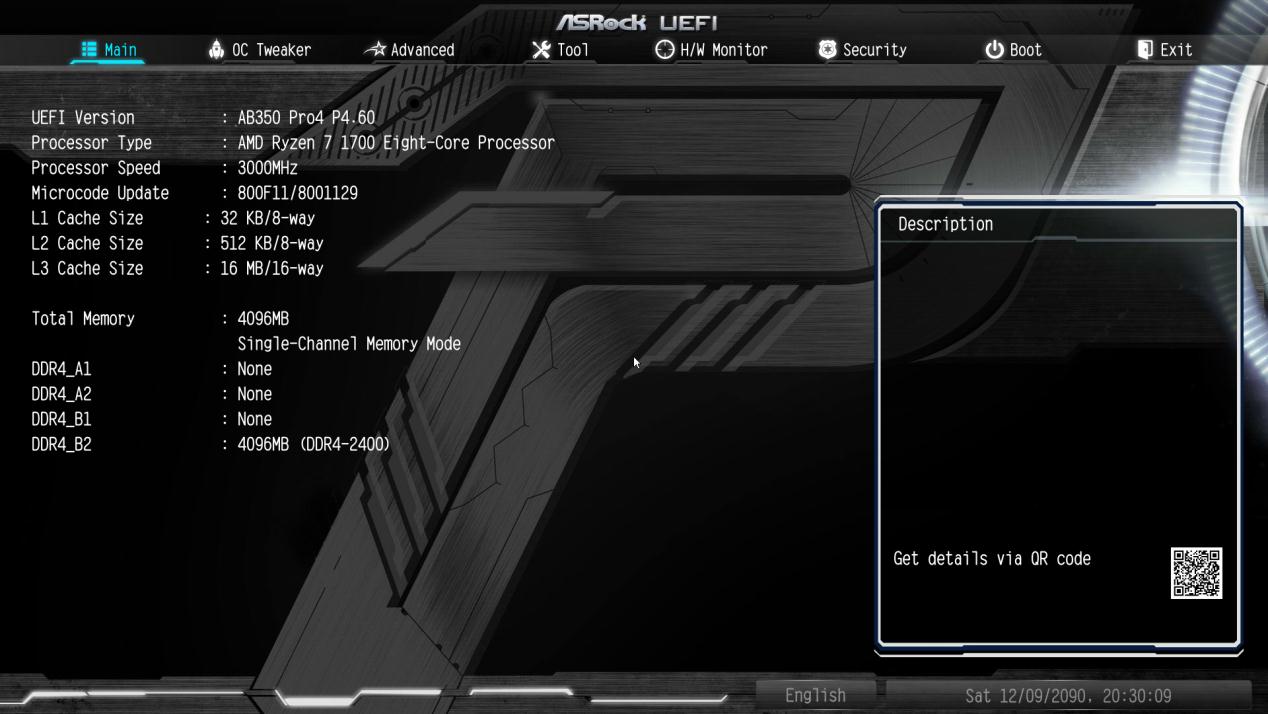 P3.40以降のBIOSバージョンを更新する前に、必ずBridge BIOSを更新してから、 RYZEN™ DESKTOP 2000シリーズ対応BIOSバージョンを更新して下さい。 ステップ1: マザーボードにSummit / Bristol Ridge CPU、メモリモジュール、およびVGAカードを取り付け、 ダウンロードされたBIOSファイルを入れたデバイスを接続し、システムの電源を入れます。 POST中に [F2] キーを押して BIOS セットアップメニューを開きます。 [Tool (ツール) ] メニューでインスタントフラッシュユーティリティを選択します。
