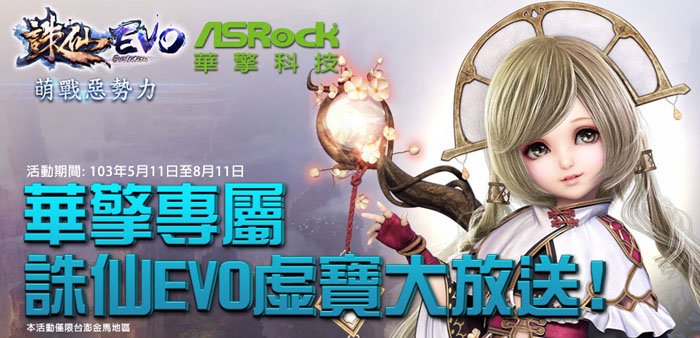 2014年5月13日, 華擎專屬好康大放送!即日起至8月11日止, 凡購買華擎Z97/H97/B85系列主機板, 運用內建軟體ASRock APP Shop下載《誅仙EVO》遊戲, 就送您華擎專屬《誅仙EVO》遊戲虛寶, 數量有限, 送完為止!